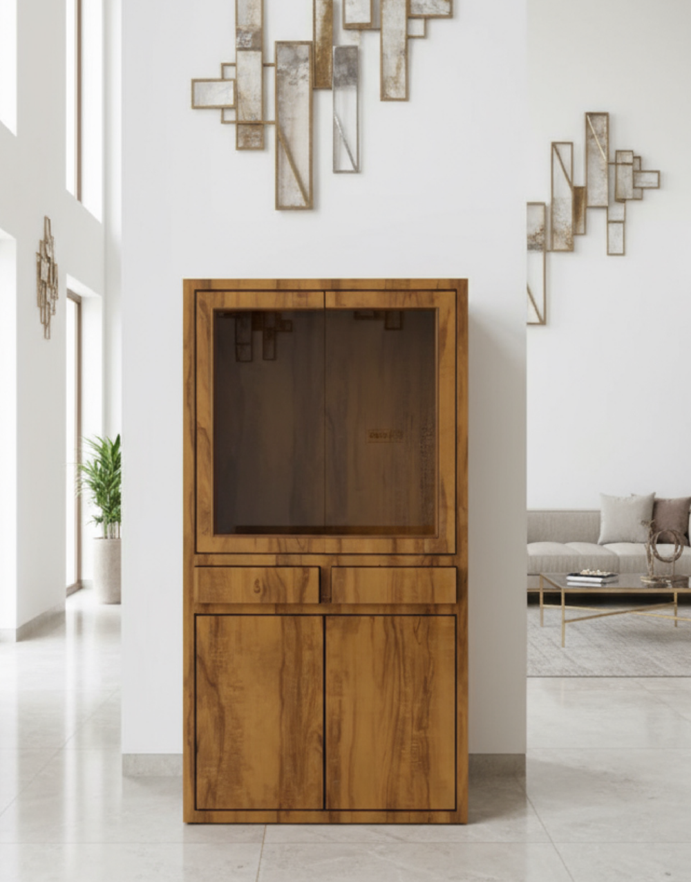 Bring sophisticated organization and modern warmth to your home with our multipurpose Storage & Display Cabinet. Designed for the contemporary home, this versatile unit elegantly solves your storage needs, whether in the dining room, living room, or hallway. Its minimalist design, defined by clean lines and a beautiful wood-grain finish, complements a wide range of interior styles.